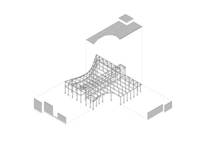 Por lo tanto, el nuevo centro se ‘ancla’ en un ámbito entre lo público y lo privado, entre el río y la topografía, entre lo urbano y el paisaje. El edificio ‘entrelaza’ diversas realidades sociales y físicas. Genera un espacio nuevo en un lugar actualmente indeterminado y relacionando lo urbano con el paisaje. Este ‘entrelazamiento’ de distintas realidades se resuelve entendiendo el programa. El programa se entiende en 3 fases: ACOGER el visitante, EMARCAR las visuales y MOSTRAR el contenido de la exposición.