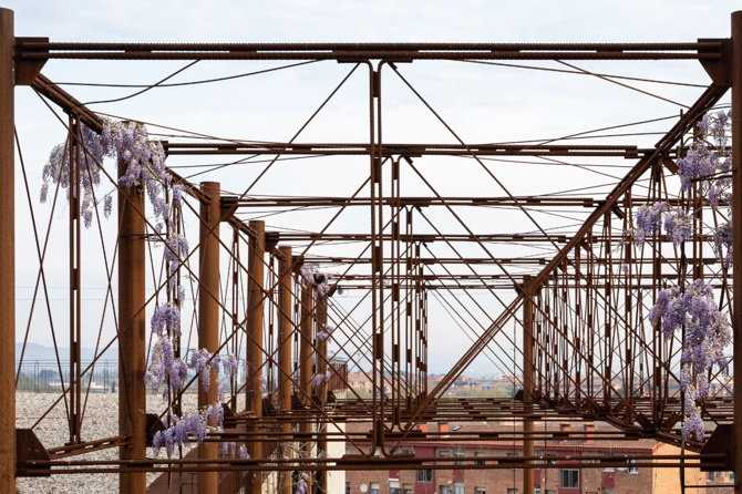 A partir de aquí, diferentes intervenciones entre los años 2015 y 2018 reconocen la prexistencia construida y activan la nueva condición de lugar: una pérgola de 900 m2 como “tutor” de 22 glicinias es el “centro de gravedad del proyecto”, complementándose con diferentes áreas y servicios logísticos que permitirán activar los diferentes programas temporales que se aplicarán en las distintas estaciones climáticas.