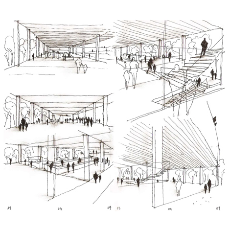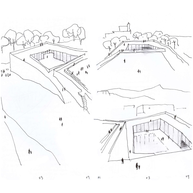 En el proceso del Museo del Clima se cuestiona el programa del concurso convocado en el año 2008. En él, y dentro de un recinto de 12.000 m2, se solicitaba un edificio de 3.000 m2 entendido como continente cerrado que debía conseguir una temperatura estable todo el año entre 18 y 25 grados, y con un contenido a transmitir en los espacios genéricos de todo museo, como son las salas de exposiciones. Alternativamente, se propuso entender el clima y sus procesos como verdadera reflexión de la propuesta, diluyendo los límites y proyectando las transiciones. Triplicando el área en unos 36.000 m2 y aprovechando que las zonas circundantes estaban calificadas como zona verde, se proyecta un gran espacio público en el que se optimizan los materiales obtenidos con el movimiento de tierras, activando a su vez la vegetación propia del lugar. Al ser el clima el objeto del museo, el continente se convierte en el contenido y al proponer no utilizar climatización artificial alguna, se consigue reducir el presupuesto a una tercera parte de lo previsto en el enunciado inicial.