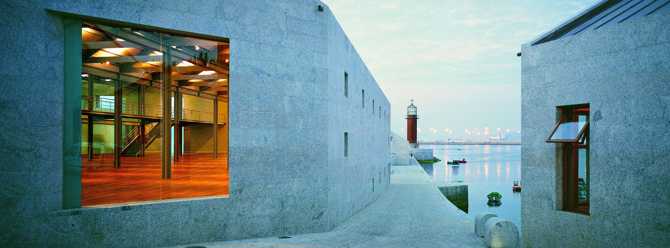 El Museo del Mar de Galicia se concibe así como un único e inequívoco ámbito espacial, con identidad propia, delimitado en parte por un muro perimetral y en parte por el propio mar, y lleno a su vez de espacios menores, dotados de fuerte arraigo y personalidad, en los que tienen cabida los más diversos usos que el programa museístico contempla.