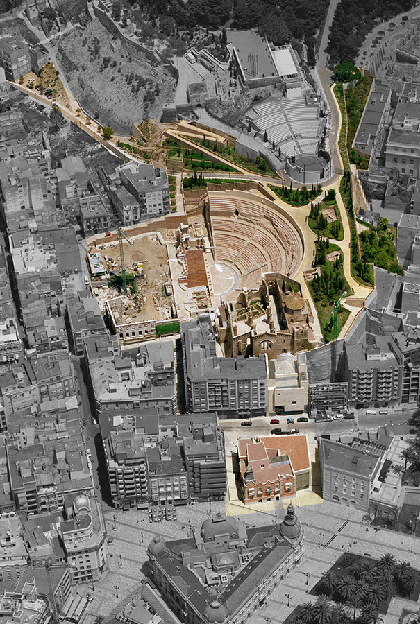 Y ya, bajo la Catedral Vieja, nos encontramos con un dramático despliegue de vestigios arqueológicos, muestra de lo que fue la ciudad de Cartagena, alcanzándose por fin el teatro, al que hay que entender como último episodio museístico. La intervención, por otra parte, ha dado lugar a que el teatro se incorpore al parque, y ha ayudado a una mejor percepción de lo que fue la ciudad del pasado y a que el denso casco histórico respire sin perder su carácter.