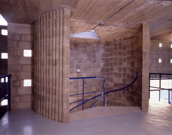 La geometría de la pieza se ordenó de acuerdo al tamaño de los bloques de hormigón que supuso una modulación muy estricta de las distintas fachadas.