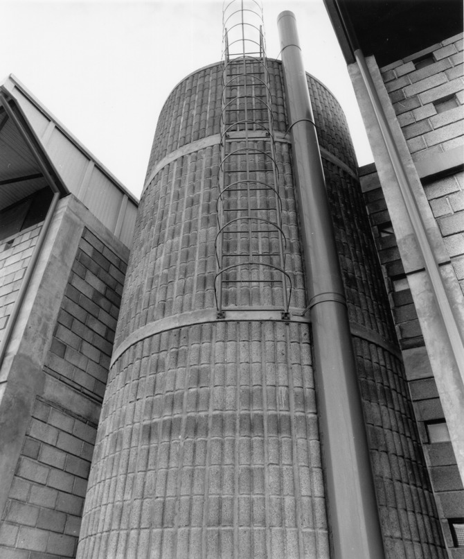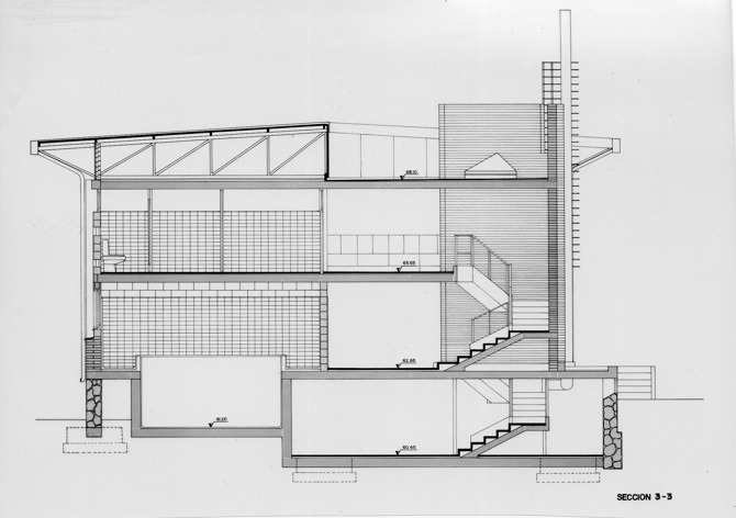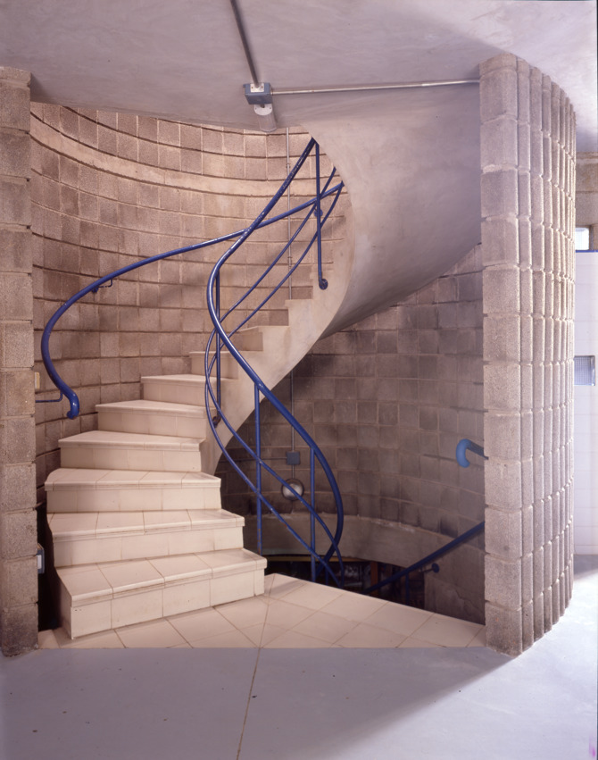 Finalmente, el diseño del elemento cilíndrico de la escalera central también fue motivo de un cierto interés proyectual y rememora en su disposición en planta algunas ideas espaciales similares características de la arquitectura de esos años. Este pequeño volumen con chimenea y escalera exterior de cerrajería supuso la adición de un elemento escultórico que enriqueció la definición de la fachada a poniente estableciendo un pequeño contrapunto formal a la horizontalidad predominante. La arquitectura resultante es deudora de ideas culturales muy presentes en la arquitectura europea y española de la segunda mitad del siglo XX.