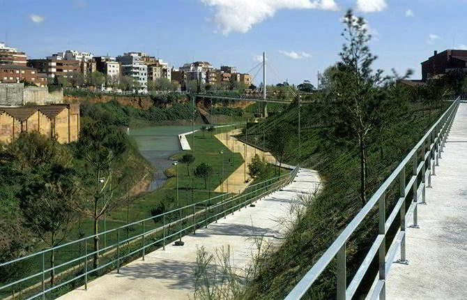 Dos proyectos en la provincia de Barcelona, ambos de Isabel Bennasar, adecúan estos cauces como espacio público. En Badalona, la Riera Canyadó (1997-1999), canaliza la rambla dejando en su superficie un parque lineal: un recorrido compuesto por diversas secciones y terrazas con pavimentos de diferentes texturas y colores, limitados por muros de hormigón y gaviones que protegen su esmerado ajardinamiento.