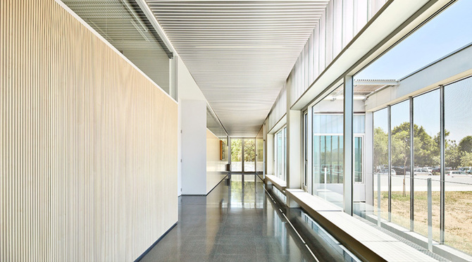 Tratamos de interpretar las leyes de un espacio que ya existía antes de ser edificado. Desde los caminos existentes, se produce un acceso natural al centro que forma parte del recorrido habitual del campus; pasear, descansar, entender desde el acceso el sitio y la edificación.