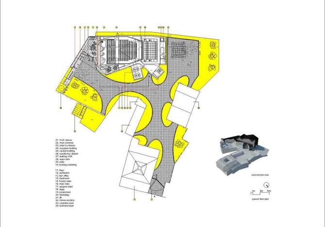 La nueva organización prevé recorridos libres con pendientes suaves que permiten la plena accesibilidad de los visitantes y restringida a los vehículos. Pavimentos de adoquines portugueses y jardines en terrazas cubren el espacio al aire libre, delimitado por antiguos edificios modestos en los que se consolidaron elementos vernáculos (bóvedas de mampostería y muros de pizarra) con el fin de preservarlos para una futura ampliación de las actividades culturales.