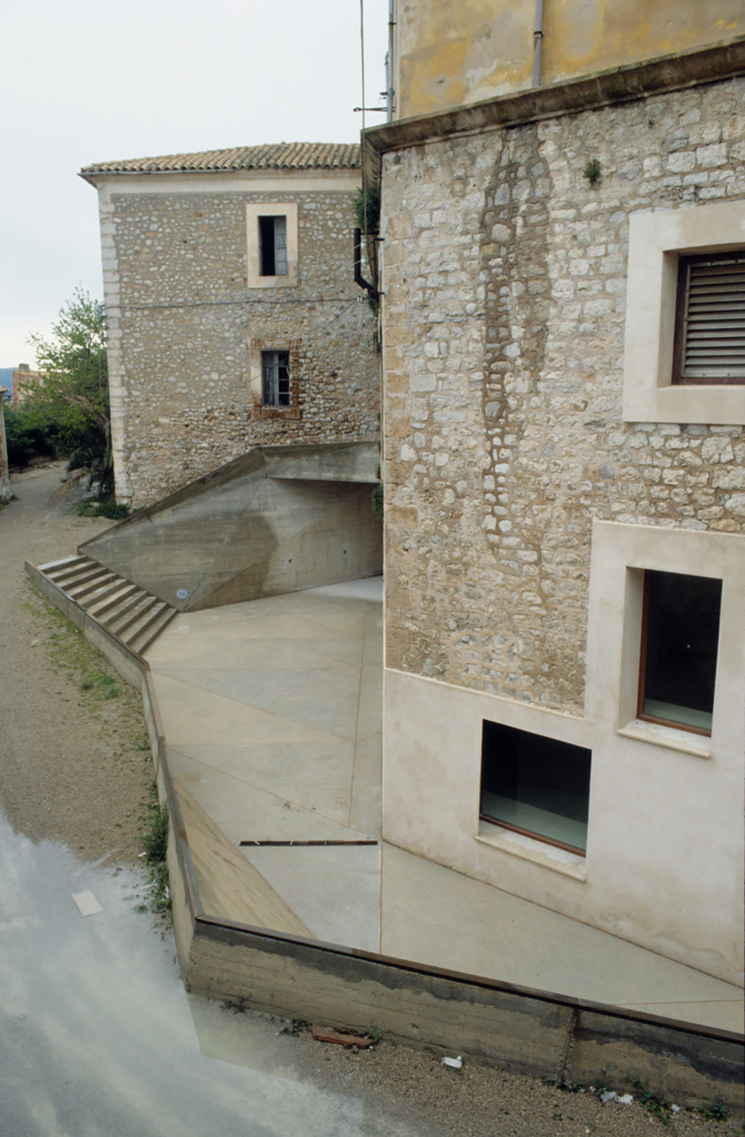 Para sanear la sala de la Antigua Casa de la Ciudad, la mejor dependencia del castillo, se han excavado patios tallados con muros de hormigón para permitir que la luz entre por los lunetos, que son la proyección geométrica hacia el exterior de los arcos interiores. La sala de la planta superior se restaura posteriormente, se limpia y mejora su accesibilidad. Las persianas y las carpinterías son de madera de iroko y los pavimentos de travertino alicantino con piezas de forma romboidal.