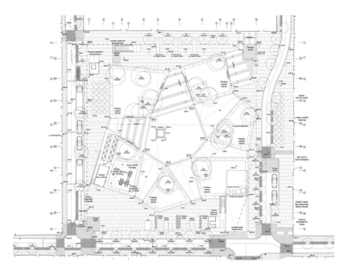 Un complejo urbano formado por dos subsistemas: la Gran Vía y sus calles laterales, nodo comercial y de ocio a escala metropolitana. El Nuevo Anillo Perimetral, conectando las seis plazas y expandiendo los límites del entorno Gran Vía a través de las siguientes estrategias proyectuales: