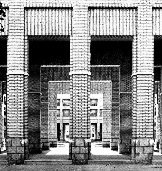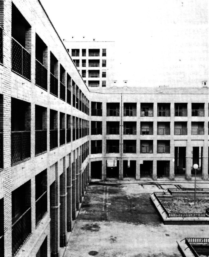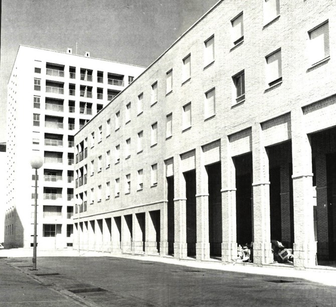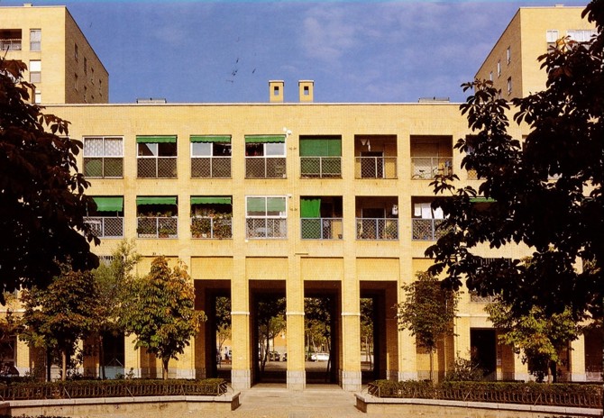 Estas viviendas construidas en Orcasitas (Madrid), integradas en una plaza cuadrada y ocho torres, proponen terciar entre el urbanismo moderno del bloque abierto y la ciudad antigua de calles y plazas, en busca de un urbanismo posmoderno.