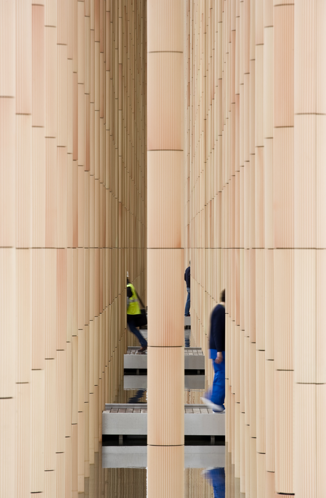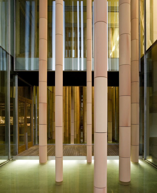Reproducir el espacio de una chopera, o de un conjunto de bambúes sobre una superficie de agua, ha sido el objetivo básico. Por un lado se crea un mecanismo edilicio capaz de generar increíbles posibilidades desde el punto de vista de la lógica energética y del compromiso medioambiental, cuestión esta básica pero en todo caso, fundamental y emblemática para el futuro Pabellón de España en la Exposición Internacional de Zaragoza, pero por otro, se traslada a la arquitectura uno de los espacios más atractivos, física y lumínicamente hablando, al que podemos enfrentarnos.