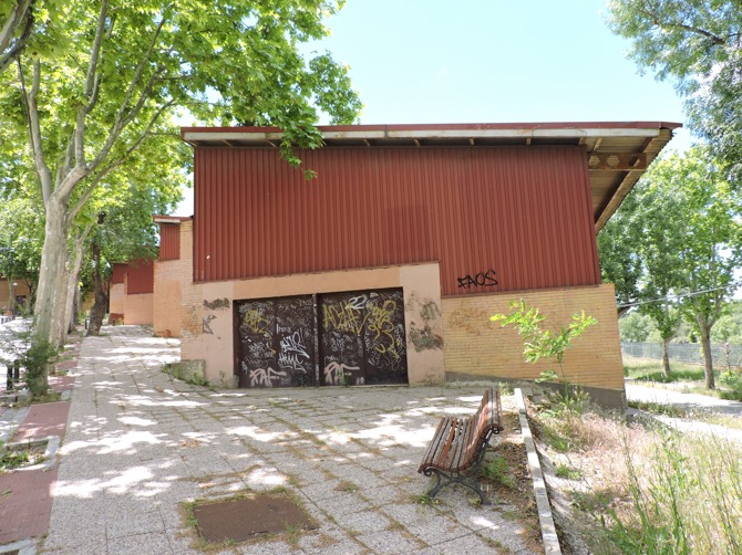 «[...] En 1962 y para la V Feria Internacional del Campo se levantó el Pabellón de Bancadas, que también ha respondido al nombre de Pabellón de El Lago y al de Pabellón de Alimentación, por haber sido utilizado para la exposición de productos alimentarios. Ubicado en la zona norte del recinto ferial, entre la avenida Principal, la calle del Arroz y la ronda del Lago, el mayor condicionante al que debía responder el proyecto era la fuerte pendiente que desciende desde el punto más elevado de la Feria Internacional (la Gran Pista de Exhibiciones, en la actualidad el lugar en el que se sitúa el Madrid Arena) hacia el norte.
