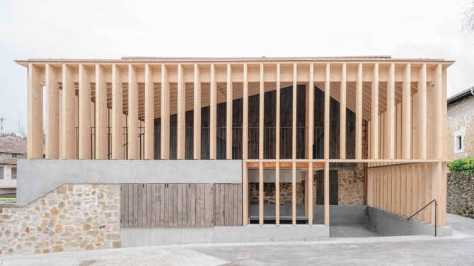 Antes de retomar su construcción, el edificio se había tenido que reproyectar de nuevo, para dejarlo igual que al principio, pero solventando los problemas generados en la desastrosa primera fase de las obras. Era, efectivamente, la última oportunidad para un baile lento. Un aterpe en euskara es un refugio, un lugar de cobijo o amparo. En el País Vasco se usa para definir un espacio o lugar cubierto, tan necesario debido al clima lluvioso del país. Dada la carencia de espacios públicos cubiertos en el centro urbano del municipio, durante el desarrollo del proyecto básico de rehabilitación del Ayuntamiento de Larrabetzu surgió la idea de la transformación del edificio anexo al mismo, prácticamente en desuso y de escaso valor arquitectónico, en un espacio exterior cubierto que complementase el espacio público que rodea la casa consistorial.