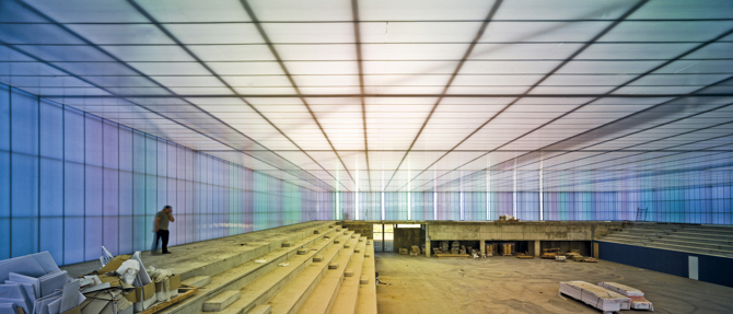 El resultado, un espacio interior de luz uniforme, sin sombras, que permite practicar deporte con luz natural la mayor parte del día.