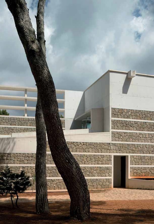 Todo el conjunto pretende recobrar el carácter simbólico de os lugares intermedios tan genuinos de la isla de Ibiza, construir con retales, aunque transformados desde la arquitectura popular a la actualidad.