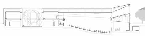 Un interior que es exterior para la sala de exposiciones; la mampostería que limita las lindes del paisaje convertida en un apilamiento para la fachada.