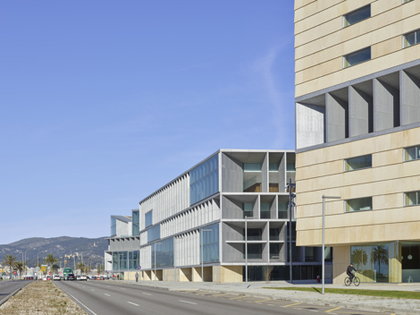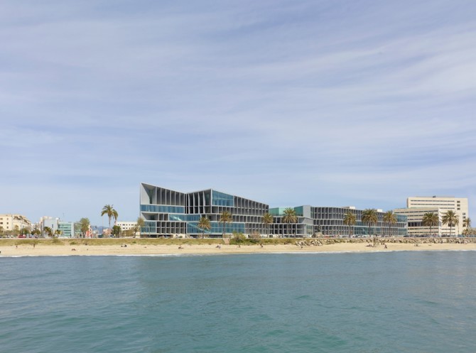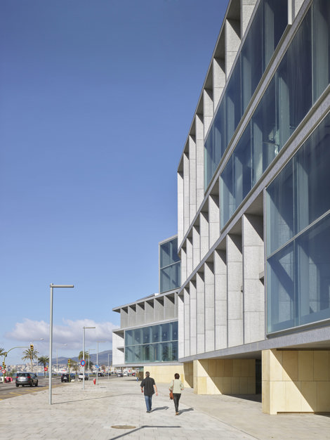 Mirar el mar es mirar al sur. Esta idea se combina con la de hacer que el propio edificio forme parte del paseo marítimo, a través de una única decisión: mirar al mar a través de una fachada gruesa, un espacio de 6 metros de espesor. Una fachada que enmarca las vistas desde el interior, pero también actúa como un gran brise-soleil que regula la luz solar en el interior. La idea del edificio como continuación del paseo marítimo se complementa con un alto grado de permeabilidad, a ras de suelo, entre interior y exterior, con espacios intermedios protegidos.