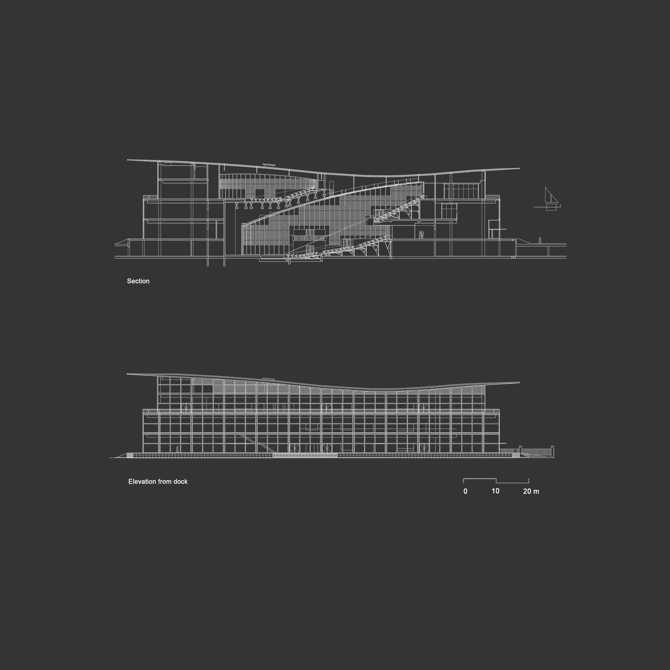 Fantasía, imaginación, claridad, rigor y racionalidad de funcionamiento se hermanan en esta propuesta y permiten una nítida identificación de cada uno de los usos y sus espacios sirvientes y servidos, dentro de una gran unidad y compacidad de planteamiento, que favorece el mutuo trasvase de sinergias entre lo público y lo privado, el interior y el exterior, la ciudad y el puerto, teniendo como telón de fondo el emblemático conjunto de fachadas con galerías del Paseo de la Marina y el constante trasiego de barcos en el puerto, ya sean pequeños barcos de pesca o de recreo, o gigantescos transatlánticos.