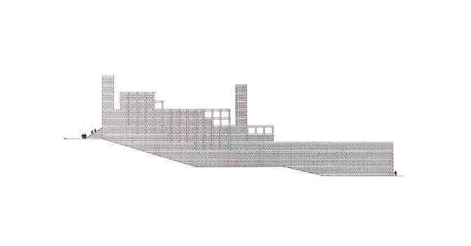 Ofrecemos una rígida propuesta formal: vivimos con la necesidad de imágenes dentro de un mundo gris, sin formas: dos tenistas venían ayer de Sídney; su comentario no era del propio juego sino de la ópera (rendido tributo a Jorn Utzon). Nuestro recurso formal, en lo íntimo, el más montañés: el entretenido enlace de cubiertas con la línea del cielo: ahí están, prolongándose verticalmente, los muros cortafuegos, ahí está la Magdalena, confirmándolo.