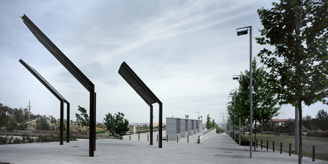 Adyacentes a estos nuevos espacios y tangencialmente en el paseo de Sant Ramon se sitúan unos edificios de servicios entendidos como elementos semienterrados, cuyas cubiertas son accesibles y se convierten en excelentes miradores sobre el delta de Llobregat. Se trata de potenciar al máximo el carácter panorámico del parque de la Muntanyeta, ya que es el mejor mirador natural de la comarca y, a la vez, es un punto de referencia visual para su entorno.