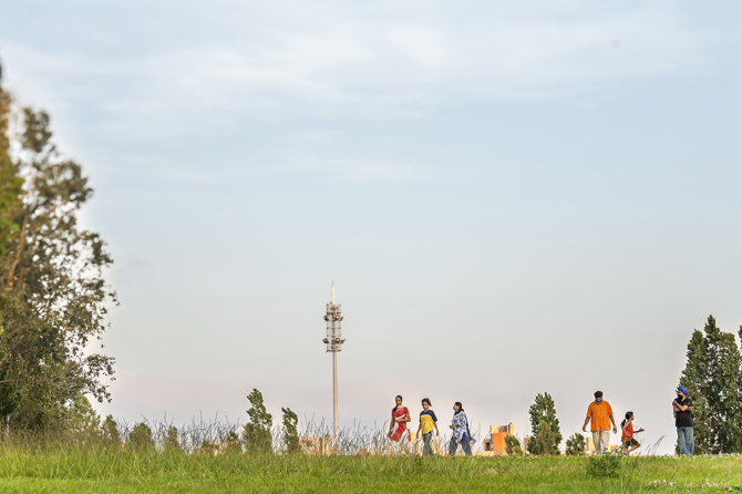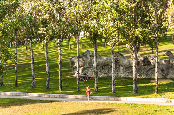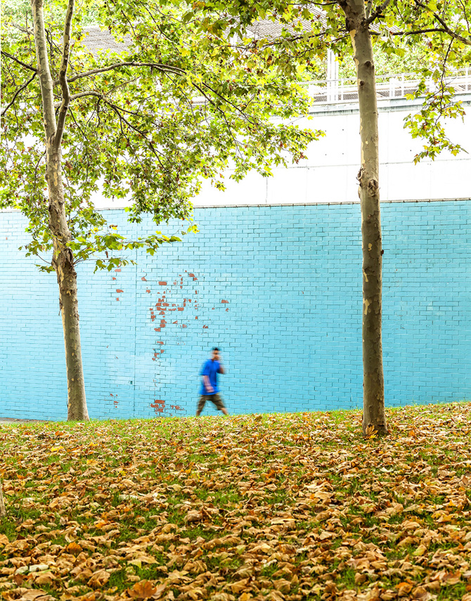 De todos los espacios libres resultantes del trazado del intercambiador sin duda el de mayor tamaño e interés era el círculo central. De unos 300 m de diámetro, cercenado en su lado sur por el trazado del tren, el parque de la Trinidad se sitúa prácticamente en la cota natural del meandro.