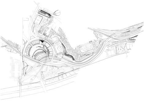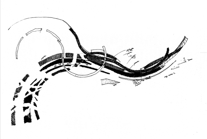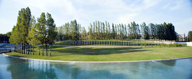 El proyecto se basó en una consideración general sobre el entorno que permitió entender el tratamiento del nudo y de los enlaces de las autopistas, no como una suma de soluciones diversas, sino desde la óptica de una unidad proyectual donde la vegetación, la hidráulica, la topografía, los equipamientos y los espacios públicos se gobiernan desde una única idea de trazado.