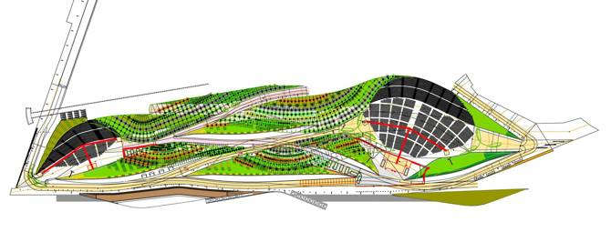 El encargo también requería que el parque albergara eventos al aire libre, que se beneficiarían de las espectaculares vistas al mar como telón de fondo. Propuesto como alternativa a la geometría racional –artificial y lineal, consistente o contradictoria– y a las aproximaciones geométricas orgánicas que pretenden captar las cualidades pintorescas de la naturaleza, el diseño del parque explora estrategias que producen paisajes organizativamente complejos.