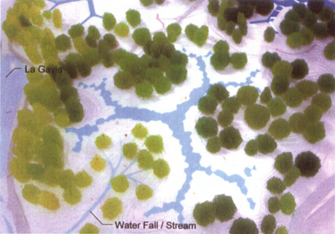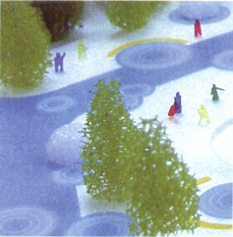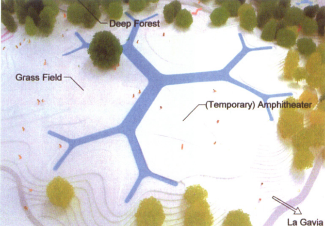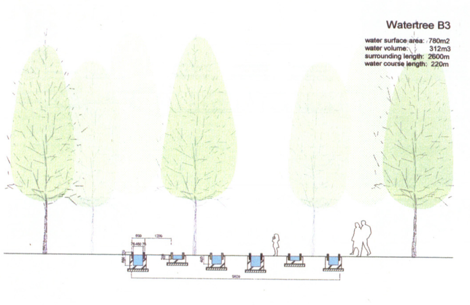 El agua se constituye como organizadora del terreno, en diferentes unidades paisajísticas. Y esta capacidad de configuración es tanto formal como funcional: las aguas residuales, que transitan durante cuatro días por los diferentes recorridos de tratamiento, denominados por Toyo Ito “árboles de agua”, van recibiendo distintos tratamientos de depuración, decantación y filtrado, de modo que al final se obtienen aguas reutilizables. El agua finalmente obtenida servirá para regar el propio parque y el resto de las zonas verdes del ensanche. Por otro lado, las nuevas infraestructuras complementarias esparcidas por el parque amplían la oferta de servicio público autosostenible.