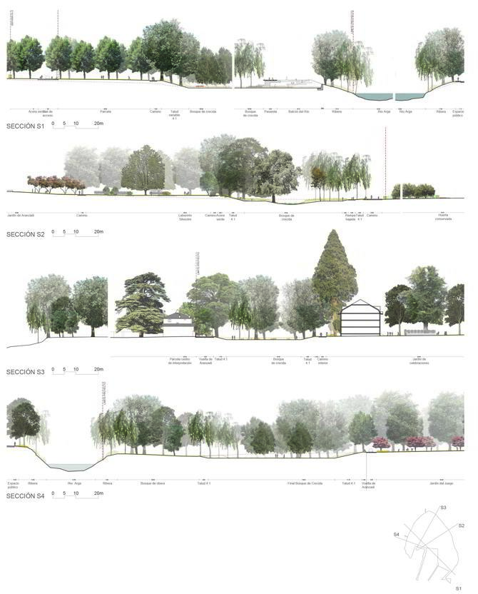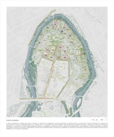 El proyecto define sus estrategias a partir de la articulación de cuatro grandes sistemas: el agua y la inundación, creando un segundo cauce temporal para la laminación y el drenaje; la vegetación, implantado un nuevo Bosque de Crecida para corregir la falta de paisaje fluvial; la agricultura, manteniendo las huertas en los suelos más fértiles de la orla de ribera; y la construcción y el viario, conservando lo estrictamente necesario e introduciendo recorridos cívicos y pasarelas para garantizar la accesibilidad y conectividad, actuando como piezas de mediación entre la ciudadanía y la naturaleza construida.