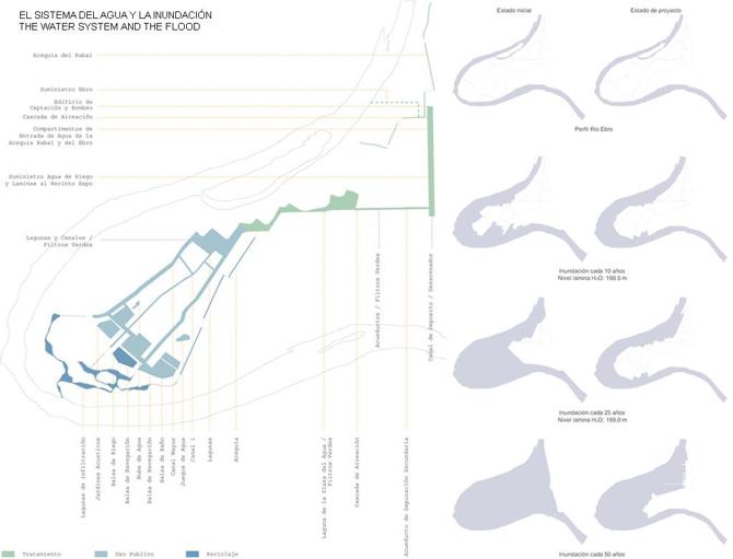 El parque tiene como objetivo conservar no solo su funcionalidad durante las avenidas, sino también el papel del meandro como zona de expansión, que ofrece un espacio de subcorriente y filtración natural a través de la vegetación; así, el río puede disipar energía y conducir el agua hacia abajo. Las zonas de baño, las partes más diseñadas y las edificaciones quedan protegidas de las inundaciones, mientras que el bosque fluvial, como exige su naturaleza, será cubierto por las aguas del Ebro, redibujando el borde del parque.
