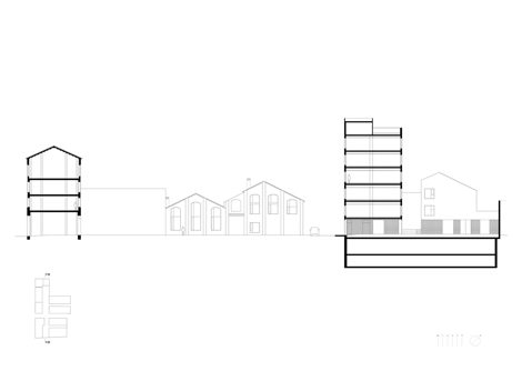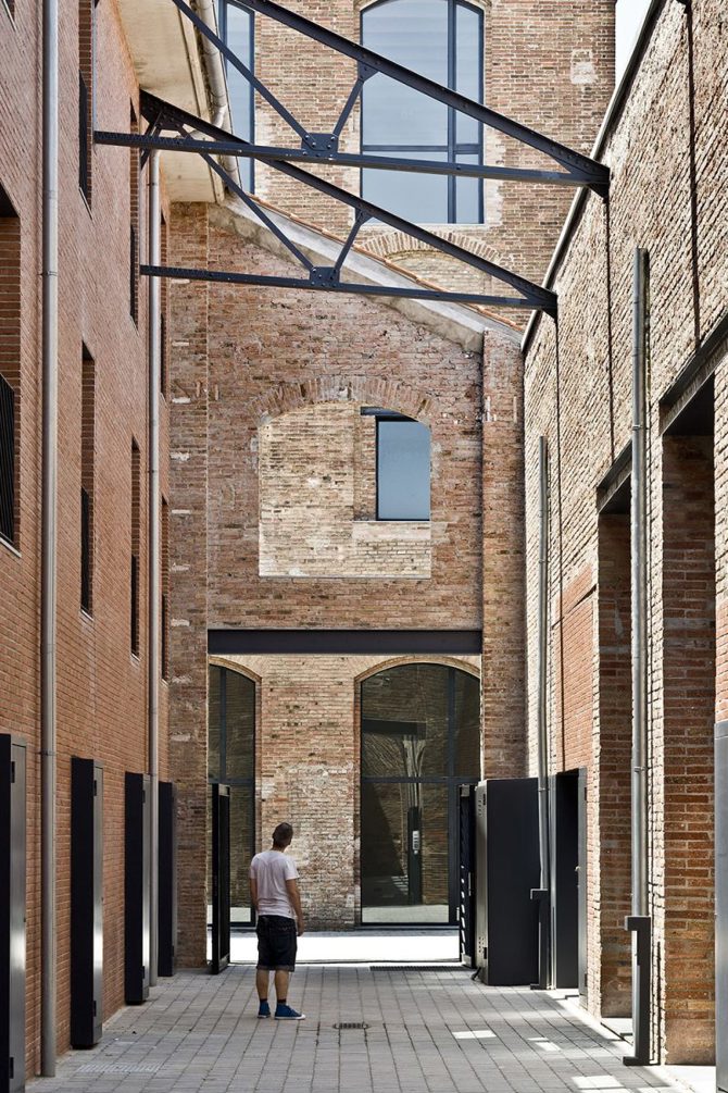 Las oficinas continúan el dibujo de los antiguos volúmenes, de manera que el conjunto define un ecosistema urbano coherente con sus calles y edificios. En lugar de un clásico edificio de oficinas, el proyecto propone una variedad de volúmenes con distintas alturas, niveles, terrazas y techos a dos aguas. Esta distribución hace que convivan de manera flexible los espacios abiertos y cerrados, lo público o semipúblico y lo privado, como si fuera una pequeña ciudad dentro de la ciudad.