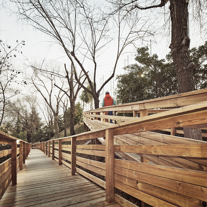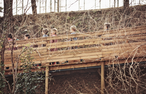 Este nuevo camino a través del bosque expresa la idea del proyecto educativo de la Escuela Thau, una escuela urbana en sintonía con la naturaleza y comprometida con el respeto del medio ambiente: La Escuela Verde.