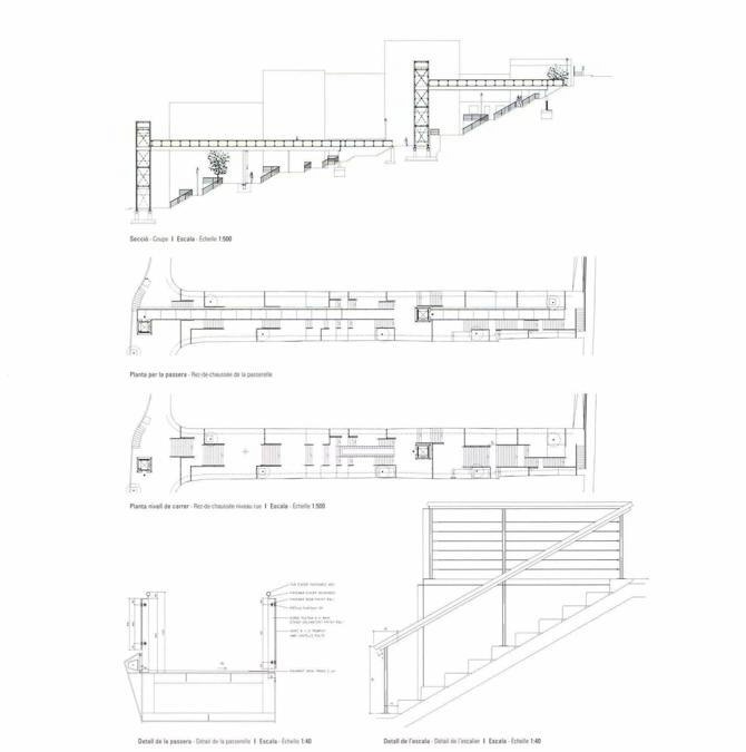 El proyecto completo consistió en la instalación de tres pasarelas y tres ascensores en el tramo entre la calle de Rodrigo Caro y Carrer de les Torres. El objetivo fue facilitar el acceso a las viviendas y los recorridos cotidianos de las vecinas y vecinos.