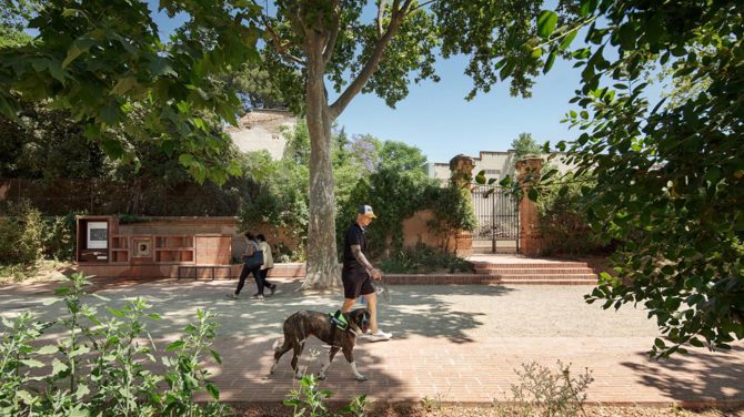 Uno de los criterios principales de la propuesta es el mantenimiento del carácter original del paseo. De esta manera, el protagonista del paseo continúa siendo el conjunto de árboles existentes y el material principal del camino el sablón. Como material complementario, y que configura la nueva integración en este entorno, se ha usado el ladrillo macizo tradicional, en diferentes formatos y disposiciones según la situación y el uso de cada punto. Su uso no se limita al pavimento sino que sirve para configurar el resto de los elementos del paseo.