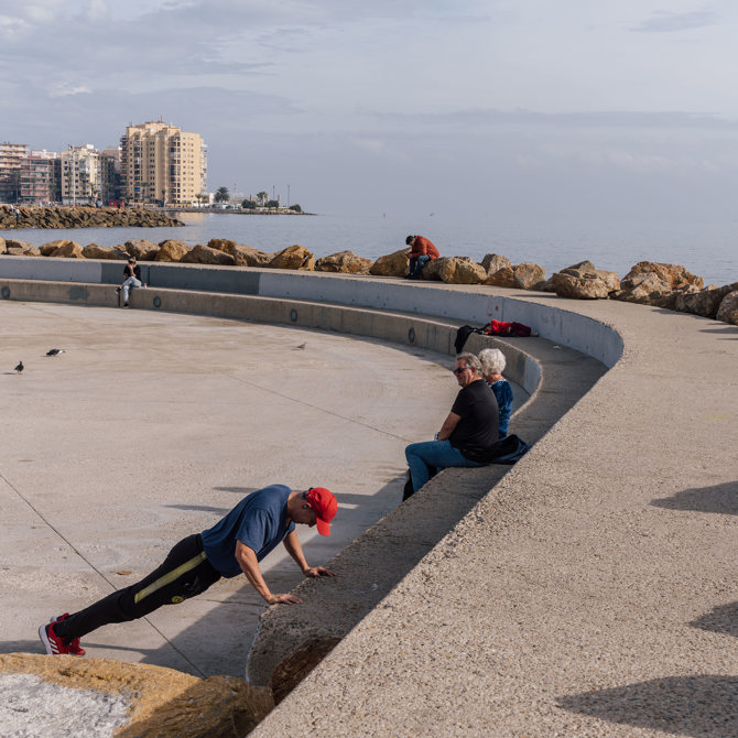 La reconocida arquitecta Carme Pinós (1954), ganadora del Premio Nacional de Arquitectura en 2021, se tituló por la Escuela Técnica Superior de Arquitectura de Barcelona (UPC) en 1979. En 1991 estableció su propio estudio. En 1996 realiza el proyecto del Paseo marítimo Juan Aparicio en Torrevieja contando con la colaboración de Juan Antonio Andreu, Javier Oliver, Patricia Juncosa.