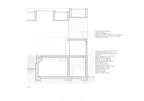 Una secuencia de lucernarios cubre la nave principal, propiciando la iluminación natural a lo largo de todo el día y la condición de faro del edificio al caer la noche, cuando la piscina está aún en funcionamiento. De la misma manera, también desde el agua es posible observar el paisaje exterior, por medio del gran ventanal al sur y del hueco recortado en la pared norte, desde la que se ven las copas de los árboles que ornamentan el patio central.