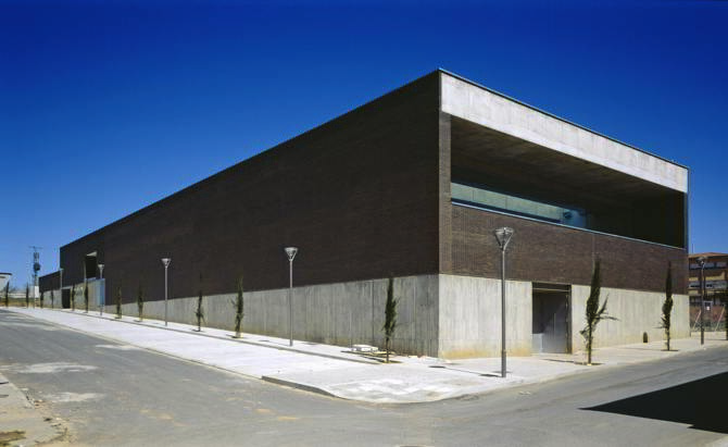 El volumen, cerrado sobre sí mismo, establece las relaciones con el exterior por medio de dos mecanismos: uno vertical, que corresponde a los dos patios tallados en el interior, y otro horizontal, a través de huecos profundos abiertos en ambos testeros. Ligeramente excavada en el terreno, la piscina ocupa el sótano y la planta baja, y se sirve asimismo de una entreplanta en un nivel superior. Se accede desde el nivel de planta baja por el costado occidental. El vestíbulo de entrada, conectado visualmente con el patio central, articula las circulaciones estableciendo dos zonas: la primera corresponde a los nadadores e incluye los vestuarios iluminados por el patio lateral —donde se han plantado tallos de bambú—, el túnel de acceso a las piscinas, que envuelve el patio central, y el espacio de la piscina propiamente dicho, donde se sitúan los dos vasos y playas junto a los almacenes de material deportivo, los aseos y las duchas; la segunda corresponde al público general y da paso a la entreplanta, donde se disfruta de las mejores vistas tanto hacia la zona de baños como hacia el paisaje exterior y el área de gestión y administración.