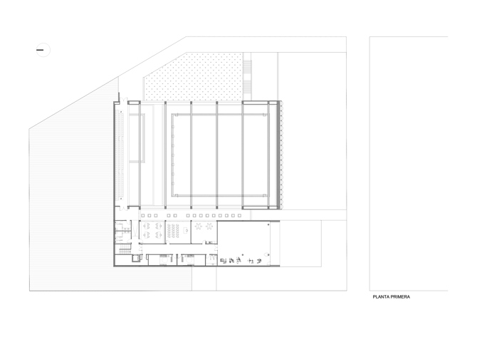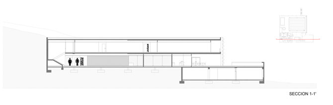 Se accede al edificio a través de una plaza-mirador, y debajo, en semisótano, se encuentran todas las instalaciones y todos los vasos son registrables. La sección del edificio ha estado condicionada por consideraciones de ahorro energético, rebajando alturas libres para minimizar el volumen de aire a climatizar, e introduciendo luz cenital para reducir significativamente los consumos.