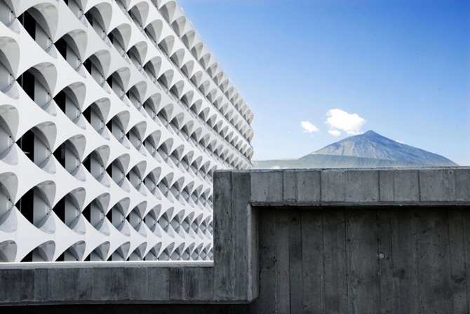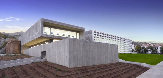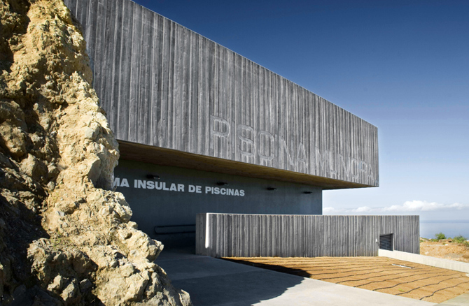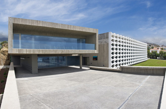 El edificio surge como respuesta a la singularidad topográfica de la parcela –con un corte de piedra viva de gran belleza–, a las vistas al mar y al Teide, al intenso asoleo de oeste y a los vientos dominantes del noreste.