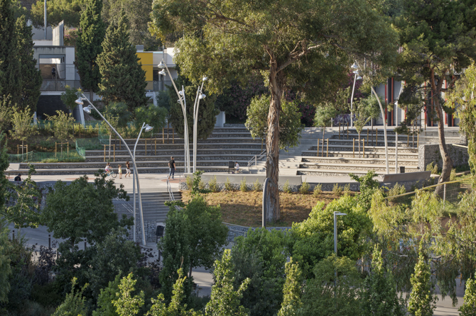 El proyecto recoge la demanda ciudadana de una superficie horizontal con suficiente amplitud para desarrollar actividades lúdicas en un barrio con fuerte pendiente y carente de este tipo de espacios, pero conservando la imponente vegetación existente (pinos, cipreses, falsos pimenteros y eucaliptus).