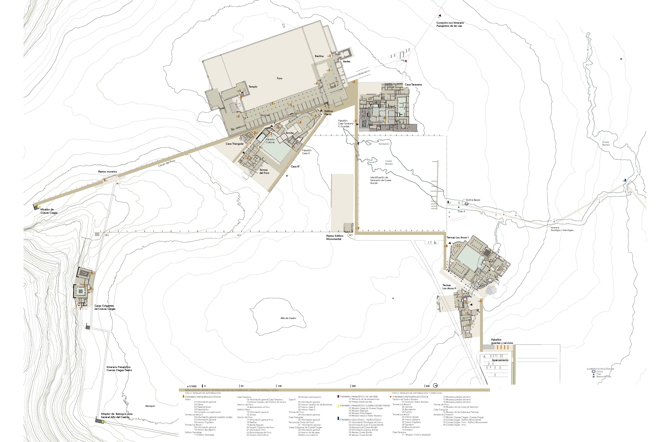 En un tercer nivel, el Plan Integral define una nueva estrategia de organización del yacimiento a través de una secuencia continua de todos los restos arquitectónicos, que articula las relaciones entre el área de recepción de visitantes, el teatro y todas las estructuras de la parte superior del cerro, hasta completar una conexión total de los restos y de su arquitectura en el paisaje.