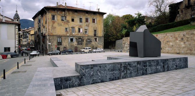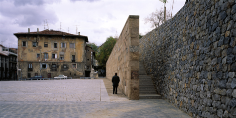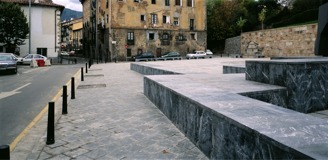 La plaza como una atalaya de vistas, desde y hacia dentro. Búsqueda de intemporalidad, como las plazas vacías de Chirico, un homenaje a los viejos frontones minimalistas vascos, en trance de desaparición.