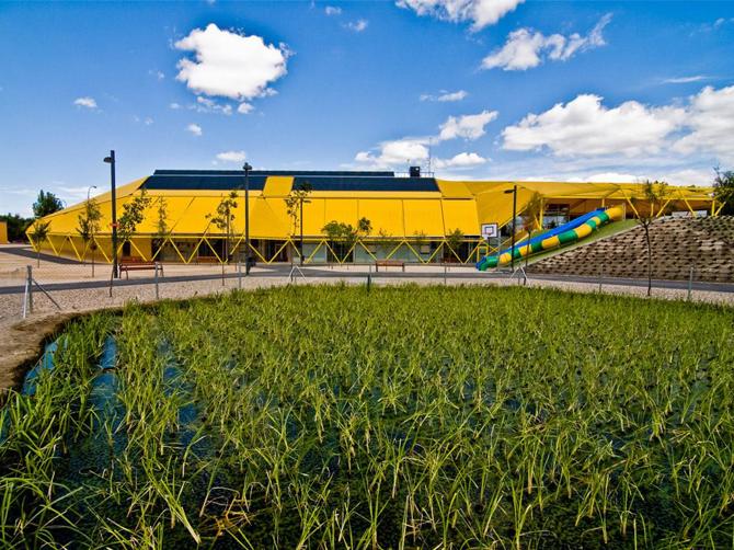 Transformación de un solar sin rostro en la Mancha urbana de Madrid, rodeado de industria e infraestructuras de transporte de tráfico pesado, en un espacio público de interacción social que proporciona un edificio para la atención a los niños. La sociedad contemporánea está imponiendo nuevos retos a la arquitectura, más allá de la experimentación formal que acapara gran parte de su historia reciente.