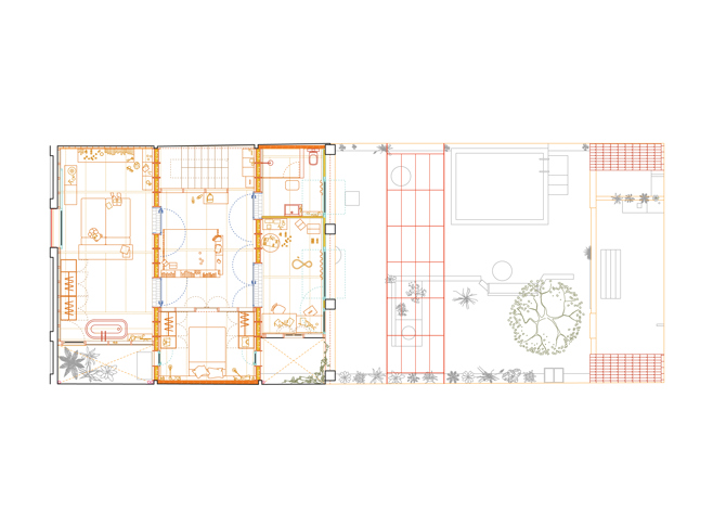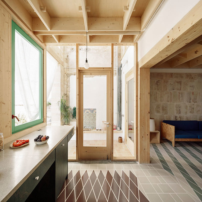 Este proyecto de ampliación y reforma se sitúa en un barrio residencial de Palma con casas de planta baja y patio. La necesidad de ampliar la vivienda original en planta baja, manteniendo la estructura de muros de carga originales, hace necesario adoptar una solución de estructura ligera como la madera.