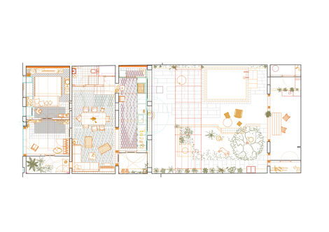 Desde un inicio, nos planteamos el proyecto como una investigación en dos líneas paralelas. Por una parte, las posibilidades de la prefabricación de elementos de madera con corte por control numérico (CNC) y, por otra, una investigación sobre las artesanías aún vivas en la isla, como el barro y el marés.