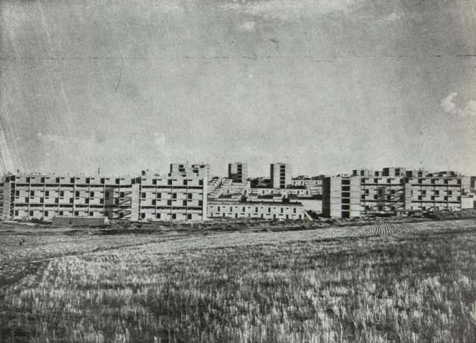 Distribuidos por el resto del poblado se prevén locales para artesanías, garajes y comercios complementarios. Las escuelas ocupan espacios acotados en las zonas verdes circundantes. El coste medio por metro cuadrado de ejecución material en viviendas es de 1.200 pesetas».