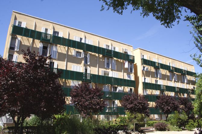 Se han previsto para este conjunto residencial de 1.600 viviendas de tipo modesto, que se construye en Carabanchel Bajo (Madrid), varios tipos de viviendas diferentes, resueltas en unos casos en forma de vivienda unifamiliar que dispone de patio o jardín propio y en otros en forma de viviendas agrupadas en bloques de cuatro y seis plantas.