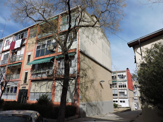 En el Poblado Dirigido de Fuencarral C se construyeron 2.039 viviendas. Su opción sin concesiones maneja elementos mínimos con los que se obtienen resultados de gran pulcritud en su traducción constructiva y de una plasticidad que entronca con referencias artísticas ajenas a la propia arquitectura.