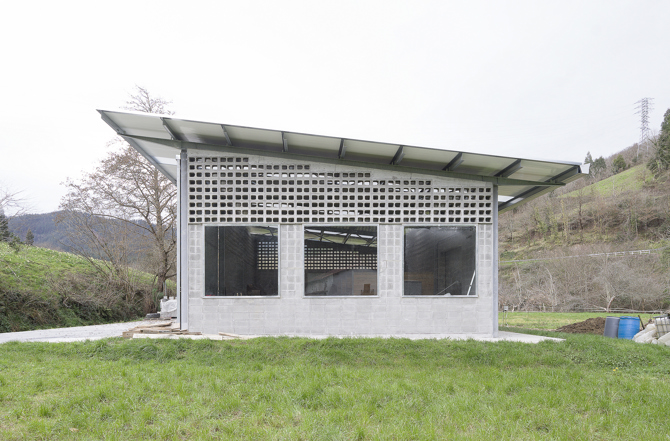 Desde Errenteria tomamos la carretera que nos dirige hacia Navarra, haciendo una breve parada en Bera de Bidasoa. Paramos para ver los trabajos de Mugara, estudio de arquitectura de Ander Rodriguez. La decisión de trabajar desde Bera de Bidasoa es la que creo que destila una posición combativa frente a realidades basadas en simplismos, estilismos o etiquetas. Sus trabajos van desde pabellones ganaderos a espacios deportivos. Ander, sabiendo desde dónde y, sobre todo, dónde trabaja, evita enseñar sus materiales, más bien, los funde en propuestas que tienen más que ver con los contextos en los que trabaja.