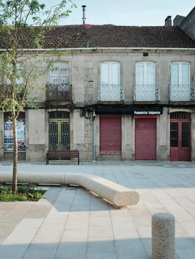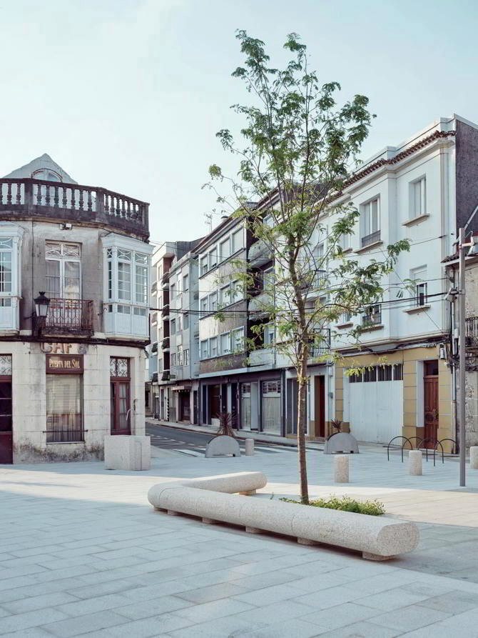 La nueva Praza da Feira se concibe como un gran salón en que realizar múltiples actividades: mercado semanal, conciertos, ferias temáticas, juegos, el paseo o la simple lectura bajo los árboles. La disposición del arbolado en el perímetro de la plaza, atenúa el impacto de los edificios más altos y contribuye a establecer una escala más amable entre la plaza y las construcciones que la rodean. A la sombra de los árboles se sitúan bancos de madera de gran tamaño, liberando el espacio central para permitir la realización de toda esa variada gama de usos. Entre el rectángulo de la plaza y las calles de su entorno se crean pequeños lugares de actividad, adecuados para la implantación de terrazas que ayudarán a llevar actividad lúdica y comercial a esa zona de A Estrada.