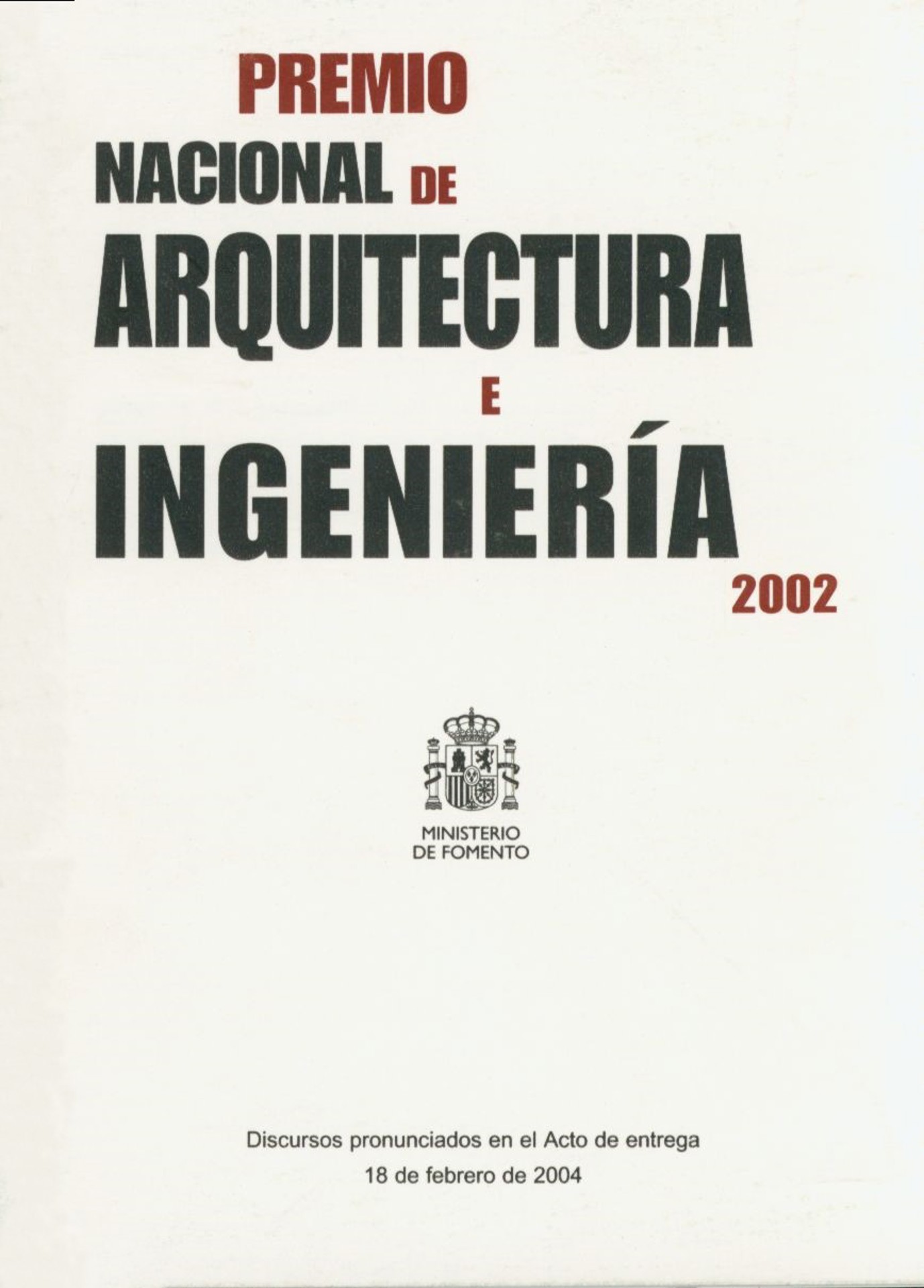 Premio Nacional de Arquitectura e Ingeniería 2002. Discursos pronunciados en el Acto de entrega 18 de febrero de 2004